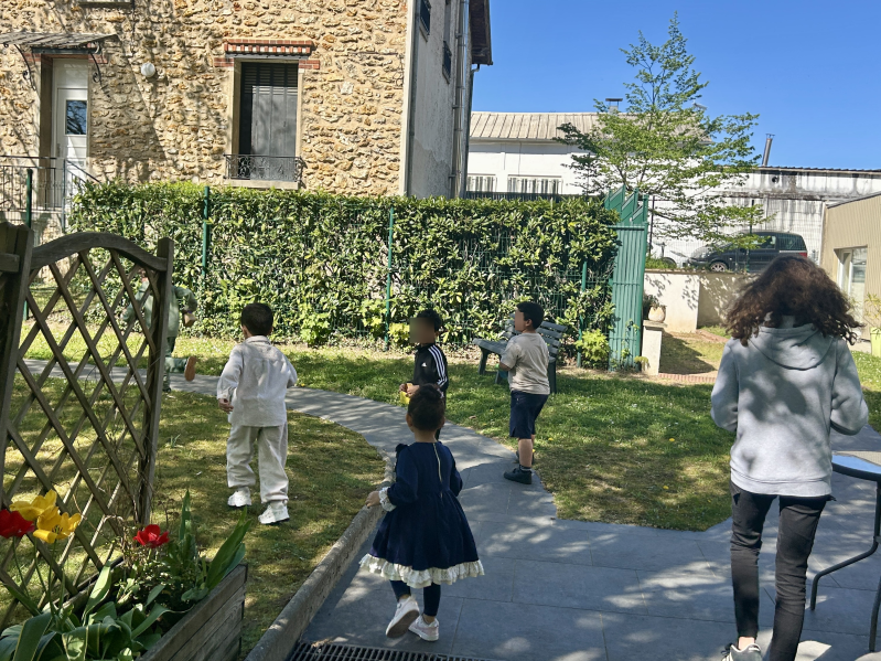 Puis, direction le jardin du Tilleul, où de nombreux œufs colorés étaient malicieusement cachés. 🐰🌿 Les enfants, très observateurs, ont relevé le défi avec brio en trouvant chacun 3 gros œufs et 3 petits. En échange, ils ont été récompensés par de délicieux chocolats ! 🍫